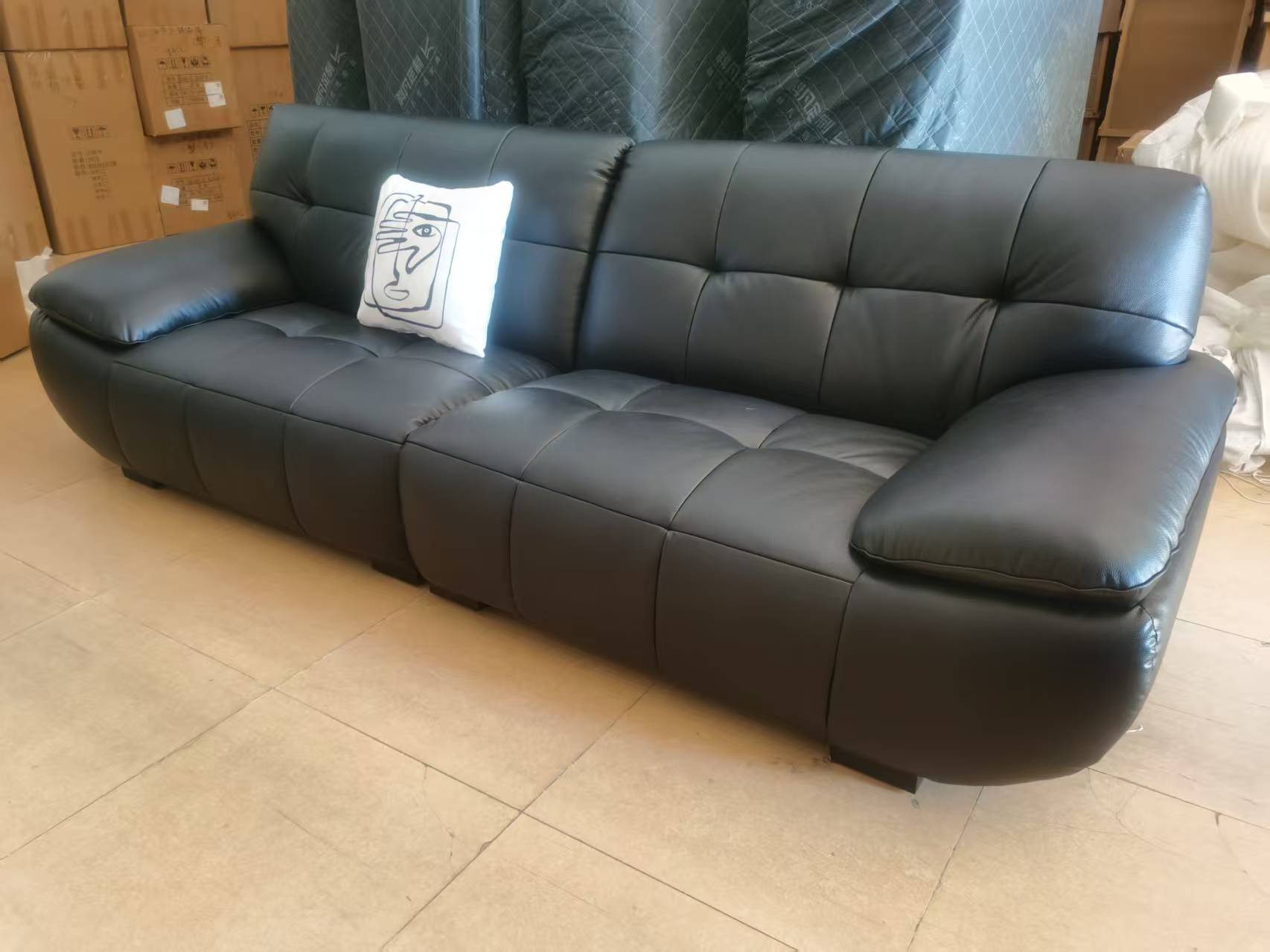 维利品尚 现代简约 接触面原生头层牛皮+靠包:羽绒+高密度海棉+松木实木内架+强力绷带+锰钢蛇形弹簧+五金脚 3.2米沙发¥6638