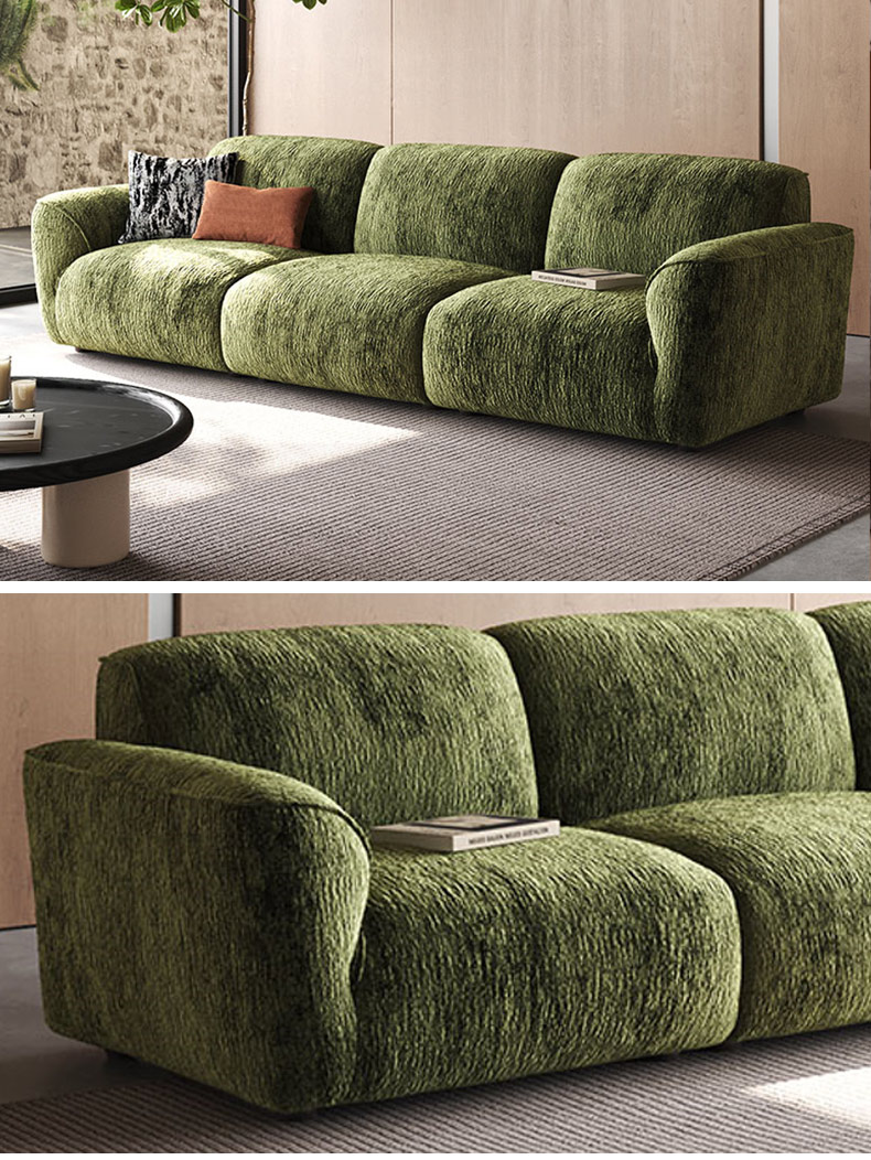 维利品尚 现代简约 比利时进口雪尼尔绒+靠包/扶手:座包:轻柔丝棉+零压记忆棉+松木内架+满铺航空级绷带+3.8mm电镀锰钢弹簧+加固精钢定位线+拉链密封防潮底布+不锈钢脚 3.4米沙发¥7369