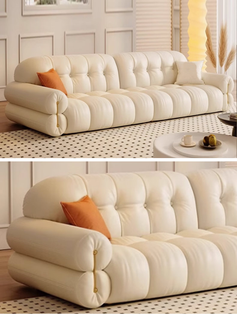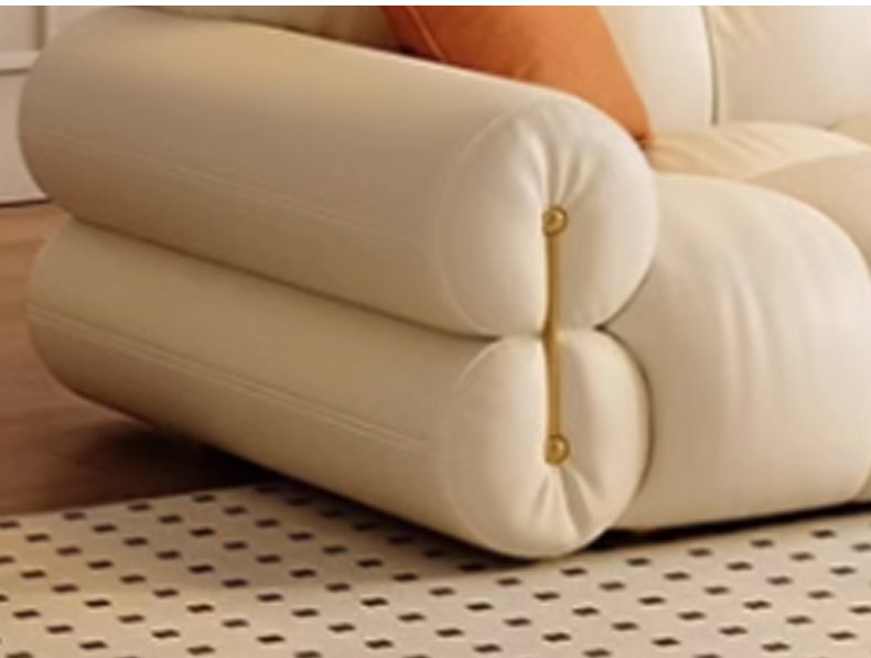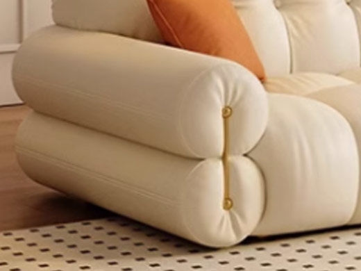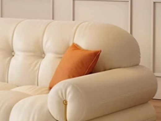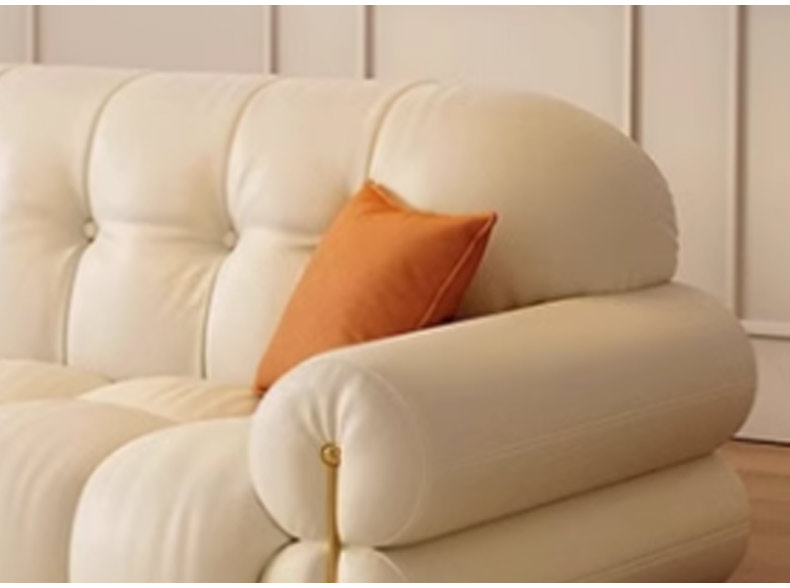 维利品尚 现代简约 接触面头层真皮+靠包: 轻柔丝棉+太空凝胶记忆棉++紫罗兰海绵+竹炭海绵+座包:太空凝胶记忆棉+紫罗兰海绵+竹炭海绵+落叶松木+高韧强力绷带+锰钢蛇形弹簧+实木脚+扶手不锈钢镀金 3.4米沙发