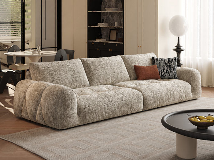 维利品尚 现代简约 比利时进口雪尼尔绒+靠包/扶手:座包:轻柔丝棉+零压记忆棉+松木内架+满铺航空级绷带+3.8mm电镀锰钢弹簧+加固精钢定位线+拉链密封防潮底布+不锈钢脚 3.4米沙发¥7369