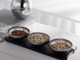 梵饰琪 三角果盘(大)+银色水滴烛台(矮)+银色水滴烛台(高)+仿真山竹 摆件 运费到付