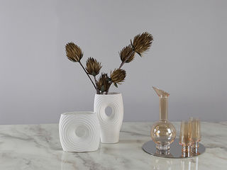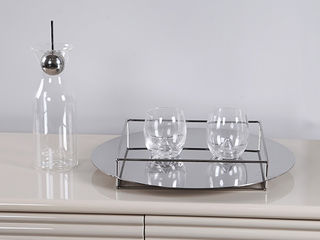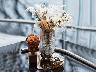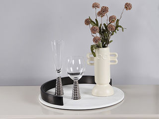 梵饰琪 极简 米旋托盘(大)+银色螺纹香槟杯+银色螺纹红酒杯+培耳花瓶+5头秋蓝蒲公英 托盘组合-18 运费到付