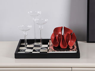 梵饰琪 极简 棋格托盘(大)+小蛮腰玻璃烛台+灯笼花摆件+硬壳仿真书-黑猫 托盘 运费到付