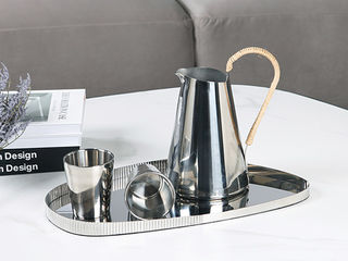 梵饰琪 简艺双曲壶+宽口双层杯+简欧不锈钢托盘02 摆件 运费到付