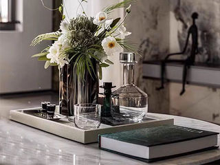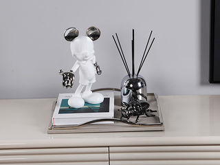 梵饰琪 极简 浅莲灰托盘+迎宾米奇(白+银)+银色香薰+甲虫摆件+黑白页仿真书09 托盘组合-20 运费到付