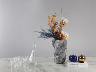 梵饰琪 虞美手扎花+荷花卷边花瓶(小)+银色条纹酒具+月落桂花香薰+望远镜摆件(黑+金)+白色鱼纹托盘+style做旧书 摆件 运费到付