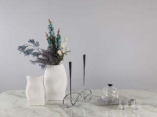 梵饰琪 紫幽兰手扎花+凹肚花瓶(高)+凹肚花瓶(矮)+扭转烛台(高)+扭转烛台(矮)+三珠托盘+威士忌酒具套装 摆件 运费到付