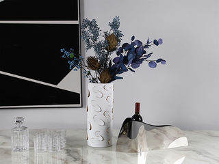 梵饰琪 知秋手扎花+白金花瓶+水晶玻璃酒具七件套+冰桶长花器+假酒 摆件 运费到付