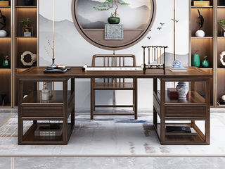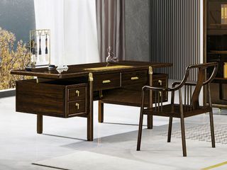 墨槿 新中式 小乌金+实木多层板 乌金色 1.6米实木书桌