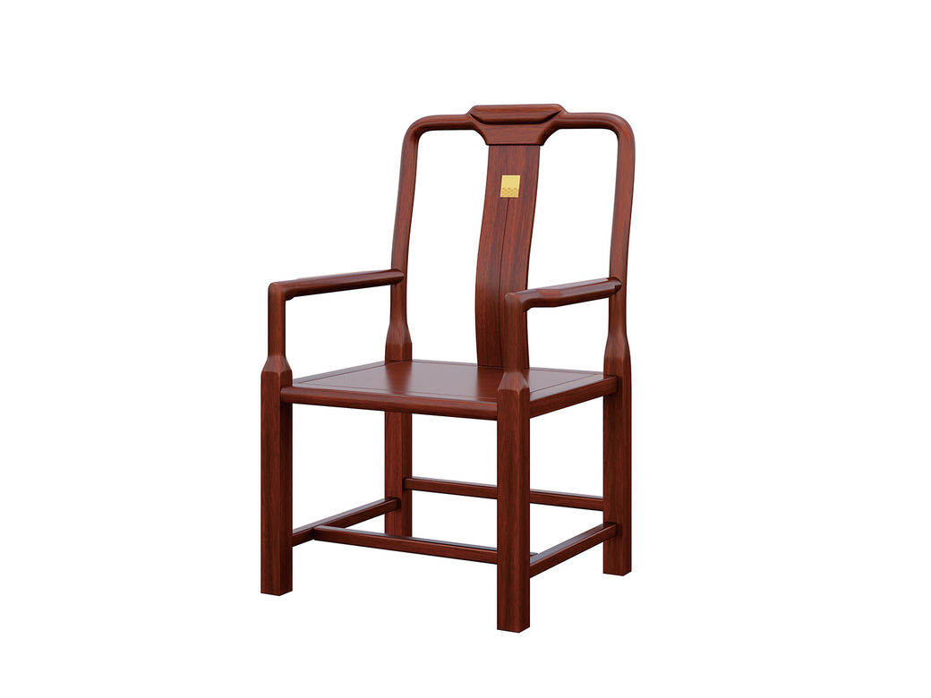 宝瑞·檀风 新中式 印尼金花梨木框架+多层实木板贴皮+电镀五金 紫檀色 茶主椅