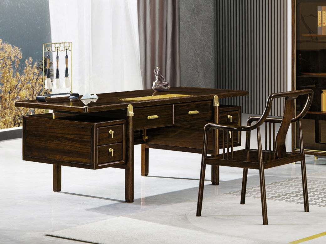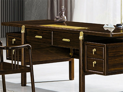 美檀家居 新中式 进口黑檀木+多层实木板+电镀五金+静音缓冲导轨(不含椅子) 黑檀色 书桌