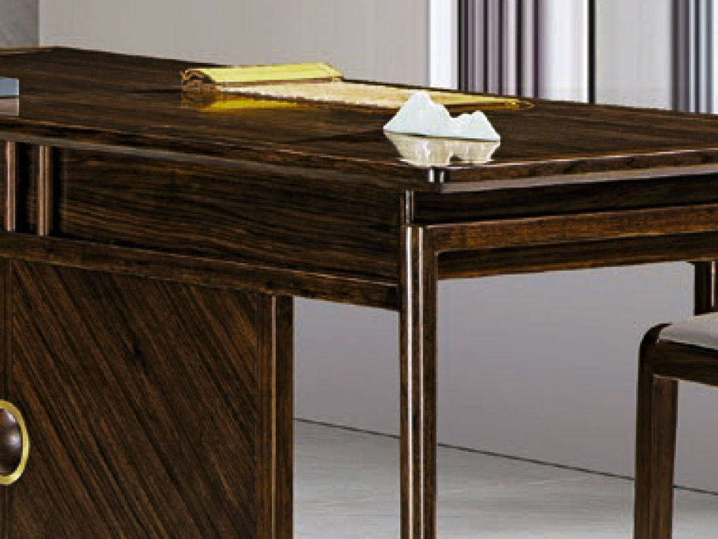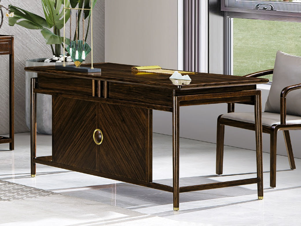 美檀家居 新中式 进口黑檀木+多层实木板+电镀五金+静音缓冲导轨 黑檀色 书台书桌