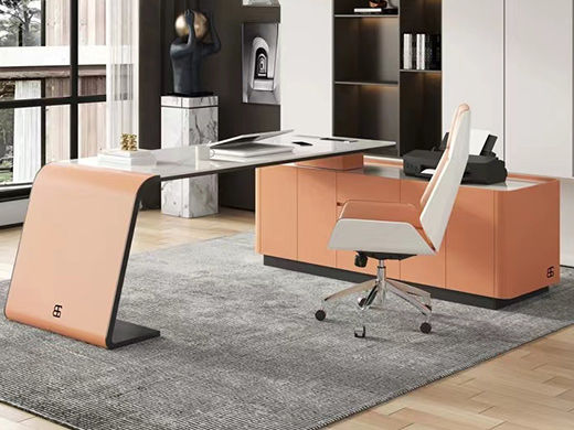 维利品尚 现代简约 新款 岩板+马鞍皮+实木抽屉+不锈钢(不含椅子) 1.2米书桌