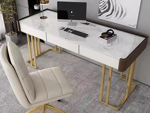 维利品尚 现代简约 新款 岩板+马鞍皮+实木抽屉+不锈钢(不含椅子) 1.2米书桌