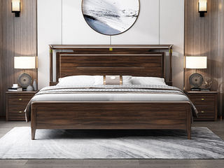 墨槿 新中式 小乌金+实木多层板+松木床板(7根床子+折叠床析) 乌金色 1.8米实木床