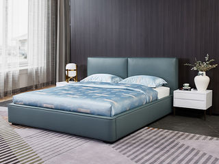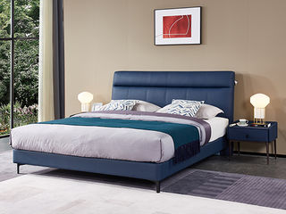 CBD家居 现代简约 接触面真皮+非接触面仿皮+东亚海绵+云杉木实木主框架+分体卷帘式排骨条 TE04云水蓝 1.8米床架
