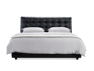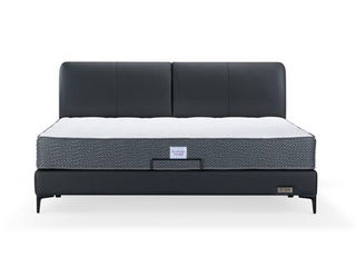 CBD家居 现代简约 接触面真皮+非接触面仿皮+东亚海绵+云杉木实木主框架+分体卷帘式排骨条 TE05高级黑 1.8米床架