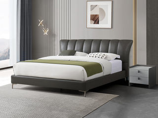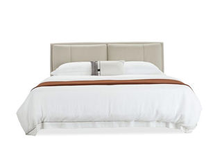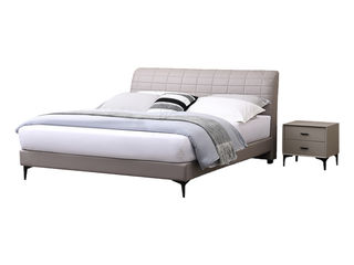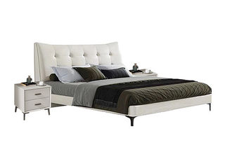 皇朝家居 现代 接触面头层真皮+仿皮+实木床边+10公分钢木排骨架 1.8米床