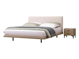 皇朝家居 现代 接触面头层真皮+仿皮+实木床边+10公分钢木排骨架+五金脚 1.8米床