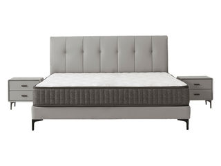 【套餐专享价】每屋优享系列 现代简约 接触面进口头层黄牛皮 实木多层板 高密度海绵 10分钢木排骨架1.8米床+2个床头柜