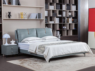 B系优选 现代简约 接触面头层牛皮 太空绵+高回弹海绵 蓝色 1.8米床(价格不含高箱,如需定制请咨询客服)