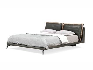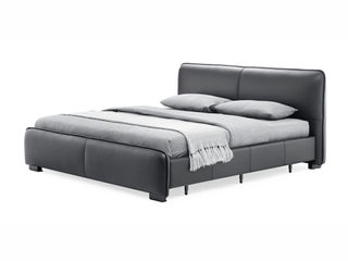 CBD家居 极简 接触面真皮+非接触面仿皮+东亚海绵+云杉木实木主框架+分体卷帘式排骨条 TE97镍灰 1.8米床架