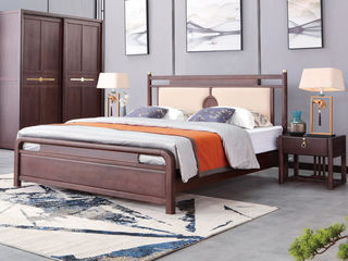 山止 新中式 橡胶木+松木+科技布 紫檀色 1.8M床
