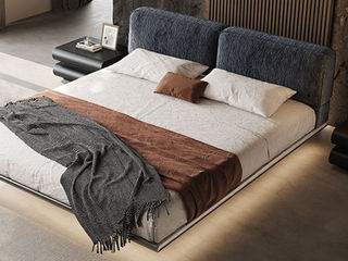 维利品尚 比利时进口雪尼尔绒面料+靠包:白鹅羽绒+羽丝棉+全不锈钢一体排骨架+脚:不锈钢+灯带:LED智能灯 1.8米床