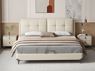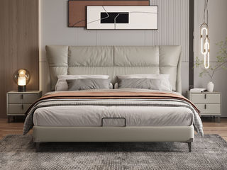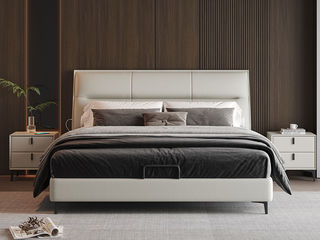 A系优选 现代简约 接触面头层牛皮+仿皮+高回弹海绵+实木框架+10分钢木排骨架 1.8米床