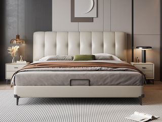 A系优选 现代简约 接触面头层牛皮+仿皮+实木框架+高回弹海绵+10分钢木排骨架 1.8米床