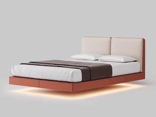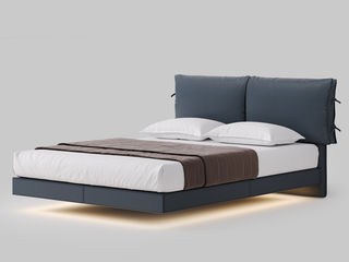 CBD家居 现代简约 接触面真皮+非接触面仿皮+云杉木实木主框架+悬浮床架+有灯带 1.8米床