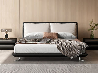 CBD家居 现代简约 接触面真皮+非接触面仿皮+云杉木实木主框架+床尾挡板 1.8米床