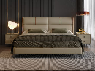 A家家居 现代简约 接触面床头:头层牛皮+高弹海绵内框:实木条+实木多层板 1.8米 床