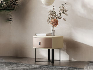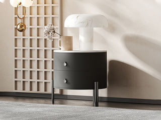 Minttu明途 极简 柜身环保E1板+橡木抽+pu皮+岩板 圆形床头柜1个