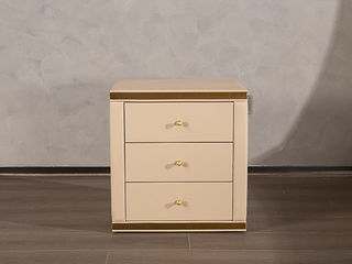 柏思戈 轻奢 仿皮 中纤板 实木板 铜拉手 米黄色 床头柜1个