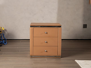 柏思戈 轻奢 仿皮 中纤板 实木板 铜拉手 棕色 床头柜1个
