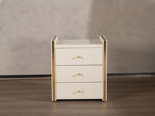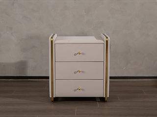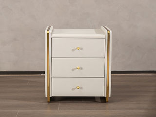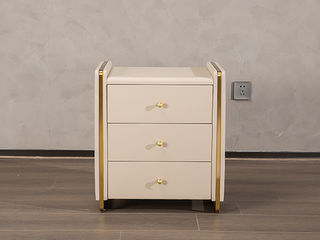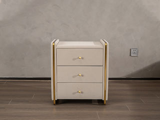 柏思戈 轻奢 仿皮 中纤板 实木板 铜拉手 米白色 床头柜1个