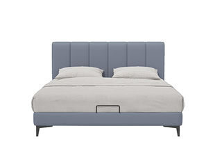 CBD家居 现代简约 接触面真皮+非接触面仿皮+东亚海绵+云杉木实木主框架+分体卷帘式排骨条 TE04云水蓝 1.8米床架