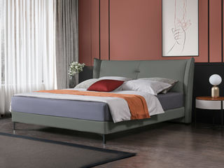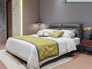 CBD家居 现代简约 接触面真皮+非接触面仿皮+云杉木实木主框架+床尾挡板 1.8米床