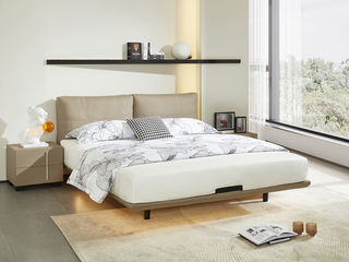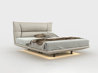 CBD家居 现代简约 接触面真皮+非接触面仿皮+云杉木实木主框架+悬浮床架+有灯带 1.8米床