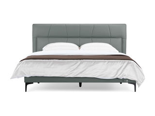 CBD家居 极简 接触面真皮+非接触面仿皮+东亚海绵+云杉木实木主框架+分体卷帘式排骨条 TE07天青色 1.8米床架