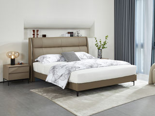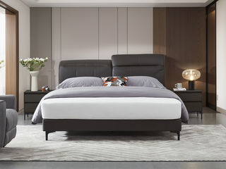 CBD家居 现代简约 接触面真皮+非接触面仿皮+云杉木实木主框架+床头靠背可调节 1.8米床