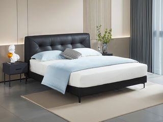 CBD家居 现代简约 接触面真皮+非接触面仿皮+东亚海绵+云杉木实木主框架+分体卷帘式排骨条 TE05高级黑 1.8米床架
