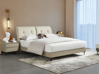 CBD家居 现代简约 接触面真皮+非接触面仿皮+云杉木实木主框架 1.8米床