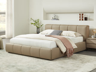 左右家居 极简 接触面头层黄牛皮+碳素钢脚+木板床身+高回弹性海绵填充 米白色 1.8米悬浮床