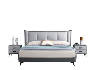 B系优选 轻奢 高端仿真皮+PVC 十公分钢木排骨架+进口实木 1.8米床+两个床头柜(价格不含高箱,如需定制请咨询客服)