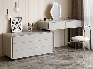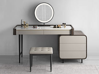 柏思戈 轻奢 亮光岩板+亮光烤漆柜子,碳素钢五金底架+实木抽屉 灰色 0.8米梳妆台包含凳子、镜子