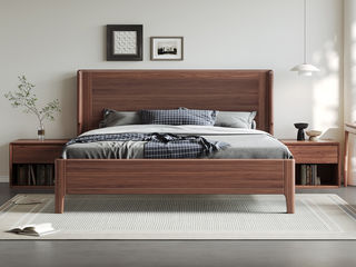 宝瑞·檀风 新中式 印尼金花梨木+多层实木板+木纹木皮+漆面床板 紫檀色 1.8米床