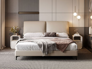贝斯solo 设计师 网红 极简 接触面真皮 俄罗斯进口落叶松 优质羽绒靠包 静音床板 小象耳朵床 1.8米床