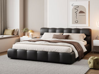 贝斯solo 设计师 网红 极简 全真皮+俄罗斯进口落叶松+优质高回弹海绵靠包+钢木排骨架 泡芙床 1.8米床
